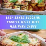 Delicious and comforting Layered Zucchini Ricotta Melts with Marinara, featuring roasted zucchini slices layered with creamy ricotta and mozzarella cheeses, seasoned with garlic and herbs, and baked to bubbly, golden perfection. A flavorful, low-carb, vegetarian, and gluten-free Italian-inspired main course perfect for a healthy and satisfying meal.