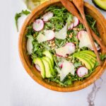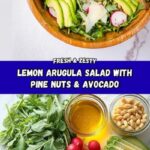 A vibrant Lemon Arugula Salad featuring peppery arugula, fresh basil, tangy lemon dressing, creamy avocado, toasted pine nuts, and shaved Parmesan cheese. This easy-to-make salad offers a delightful balance of flavors and textures, perfect for a light lunch or a refreshing side dish.