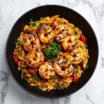 A flavorful and vibrant Shrimp Orzo recipe combining tender shrimp, perfectly cooked orzo pasta, fresh cherry tomatoes, and a zesty lemon garlic sauce. This quick and easy skillet dish is perfect for a satisfying weeknight dinner.