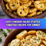 For an eye-catching party appetizer, arrange the stuffed tomatoes on a bed of mixed greens or edible flowers to impress your guests. You can also scoop the chicken salad onto circular toasted baguette slices for a deconstructed bite. Another fun idea is to halve smaller tomatoes and use them as bite-sized canapé portions at your next gathering.
