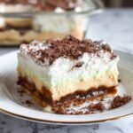 Mint Chocolate Lasagna is a no-bake, layered dessert featuring a chocolate cookie crust, creamy mint-flavored filling, and a topping of whipped cream dusted with cocoa powder. This refreshing treat combines rich chocolate and cool mint flavors, making it perfect for serving chilled on warm days or at parties.