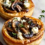 These Mushroom Shallot and Herbed Goat Cheese Tarts combine flaky puff pastry with a savory filling of sautéed mushrooms, shallots, garlic, and creamy herbed goat cheese. Perfect as an elegant appetizer or light meal, these tarts are easy to prepare and baked to golden perfection, finished with fresh thyme for an aromatic touch.