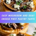These Mushroom Shallot and Herbed Goat Cheese Tarts combine flaky puff pastry with a savory filling of sautéed mushrooms, shallots, garlic, and creamy herbed goat cheese. Perfect as an elegant appetizer or light meal, these tarts are easy to prepare and baked to golden perfection, finished with fresh thyme for an aromatic touch.