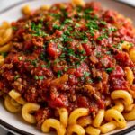 While the sauce is simmering, bring a pot of salted water to a boil and cook the elbow macaroni according to the package instructions until just tender. Drain the pasta thoroughly to prevent it from becoming soggy, then fold it gently into the meat sauce. Combining the pasta and sauce at this stage ensures every bite is coated with that wonderful savory richness that makes this dish so satisfying.