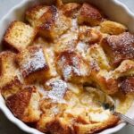 Top your casserole with a dusting of powdered sugar for a delicate sweetness and an elegant finish. Fresh berries like strawberries, blueberries, or raspberries add a vibrant burst of color and tartness that cuts through the richness beautifully. For an extra indulgent touch, drizzle warm maple syrup right before serving or dollop with whipped cream for a luxurious experience.