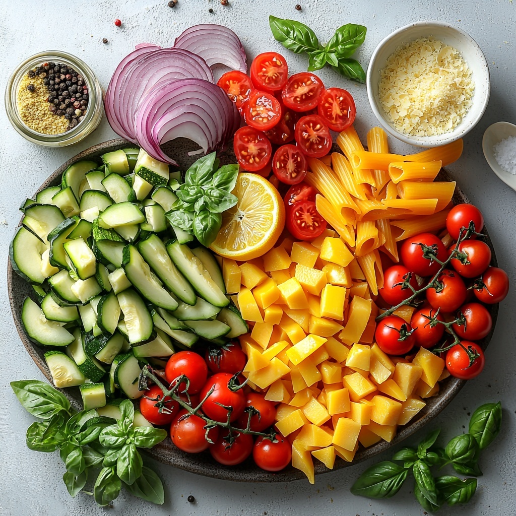 One of the best parts about this recipe is how straightforward the ingredients are. Each one plays an essential role: fresh vegetables add crunch and color, pasta brings satisfying heartiness, and the lemon garlic butter sauce ties it all together with bright, irresistible flavor.