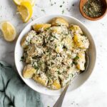 4. Serve and Garnish: Serve the pesto potato salad chilled or at room temperature. Garnish with lemon wedges, freshly minced parsley, and extra Asiago cheese if desired for added flavor and presentation.