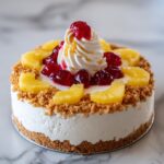 - Garnish and Serve: Before serving, optionally garnish the cheesecake with maraschino cherries, whipped cream, or extra pineapple slices or chunks for added flavor and presentation.