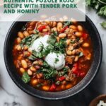 A traditional Mexican Pozole Rojo recipe featuring tender pork shoulder simmered in a rich, flavorful red chili broth with hominy, garnished with fresh cabbage, radishes, cilantro, avocado, and lime. This hearty stew is perfect for gatherings and showcases authentic flavors with a balanced blend of spices and fresh toppings.