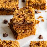 Delicious and wholesome Pumpkin Oatmeal Bars made with oats, pumpkin puree, almond butter, and warm spices. These bars are perfect for a nutritious breakfast or a healthy snack, combining natural sweetness with a soft, chewy texture. Easy to make and customizable with chocolate chips or raisins.