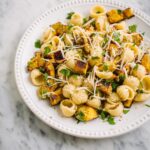 Once the squash is roasted and the pasta is drained, add the squash and 2 tablespoons of the reserved pasta water to your browned sage butter. Toss in the drained orecchiette and mix everything gently until the pasta is beautifully coated and the flavors meld. Serve immediately, finish with a generous sprinkle of freshly grated parmesan if you like, and get ready to be wowed by this simple yet luxurious meal.
