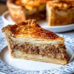 This Savory Tourtière recipe features a deliciously spiced meat pie combining ground pork and beef with aromatic spices like cinnamon, cloves, and nutmeg, all encased in flaky puff pastry. Perfect for a comforting meal, this classic French-Canadian dish offers a rich, flavorful filling and a golden, crispy crust.