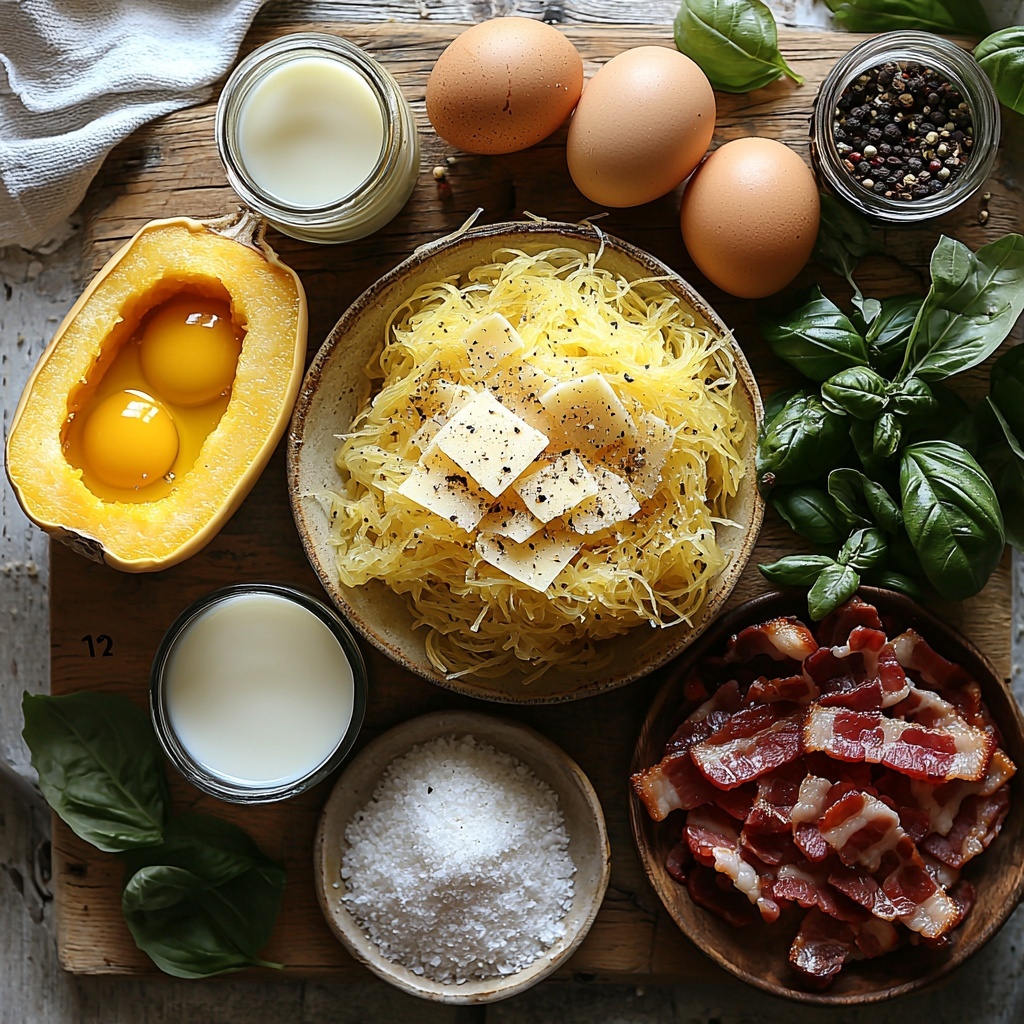 The beauty of this Spaghetti Squash Carbonara Recipe lies in its simplicity. Every ingredient is thoughtfully selected to build layers of flavor, texture, and color, ensuring each mouthful is a little moment of joy. From the delicate strands of squash to the rich Parmesan, each component plays a vital role.