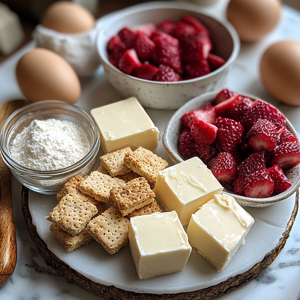 These simple yet essential ingredients come together to create the perfect harmony of flavors and textures in your Strawberry Cheesecake Bars Recipe. Each one plays a crucial role, from the crunchy crust to the smooth cream cheese base and the fresh strawberry layer on top.