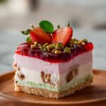 Place your cooled pistachio sponge into a cake ring or springform pan. To create those lovely layers, slice the cake horizontally if you like. Then spread the strawberry mousse evenly, followed by a generous layer of pistachio mousse. Repeat if you’re making multiple layers. Refrigerate for at least 4 hours, allowing the mousses to set beautifully and the flavors to meld.