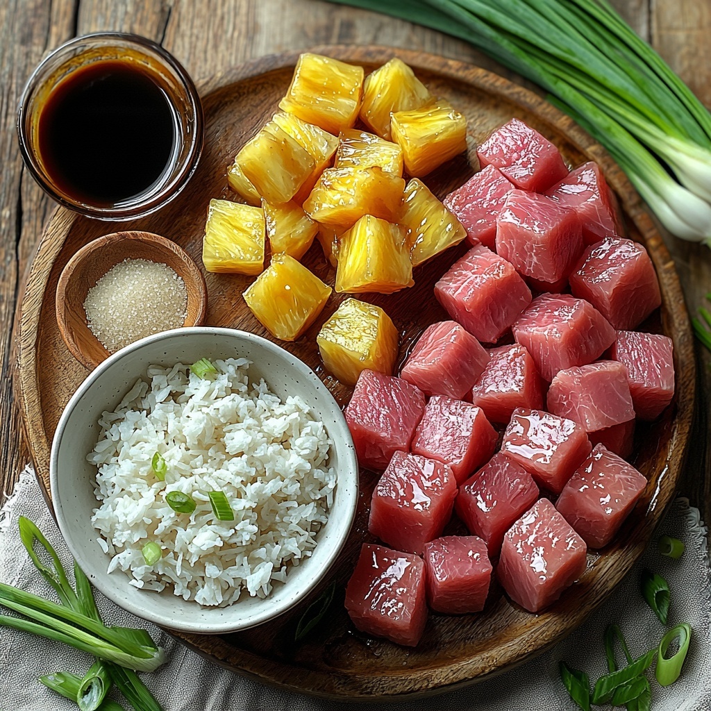 This Sweet and Savory Pineapple Chicken and Rice recipe features tender chicken pieces simmered in a flavorful pineapple and soy sauce glaze, served over fluffy rice and garnished with fresh green onions. It’s a quick, delicious meal balancing sweet and savory flavors perfect for a weeknight dinner.