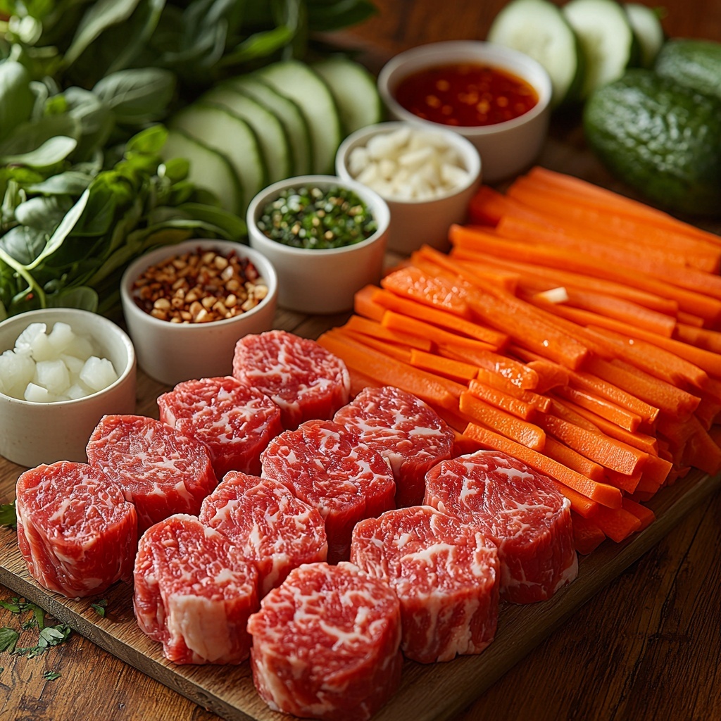 Start by slicing your flank or sirloin thinly across the grain—this helps keep the meat tender once cooked. In a bowl, combine soy sauce, fish sauce, minced garlic, shallot, brown sugar, and chili flakes to create a flavorful marinade. Toss your beef slices in this mixture and let them soak up all those delicious flavors for 20 to 30 minutes. This step is key to infusing the meat with the perfect balance of salty, sweet, and spicy notes that will sing inside your rolls.