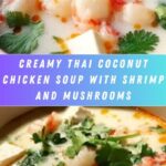 This Thai Coconut Chicken Soup is a rich and flavorful dish featuring aromatic ginger, red curry paste, lemongrass, and creamy coconut milk simmered with shiitake mushrooms and tender shrimp or chicken. Finished with fresh lime juice and cilantro, this comforting soup is perfect for a quick and satisfying meal.