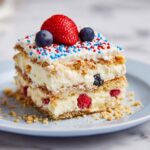 - Serve: Before serving, optionally sprinkle crushed graham crackers or colorful sprinkles on top for added texture and presentation. Slice the cake and serve chilled, enjoying the creamy, fruity layers.