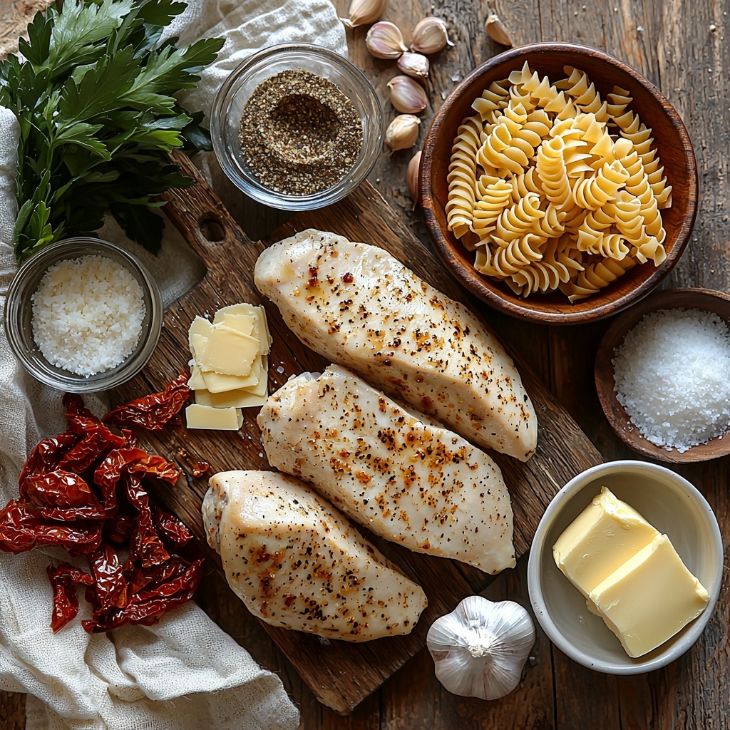 The beauty of the Tuscan Garlic Chicken Bites with Sun-Dried Tomato Cajun Alfredo Pasta Recipe lies in its straightforward yet thoughtfully selected ingredients. Each item plays a critical role in building layers of flavor, texture, and color that make the dish feel truly special.
