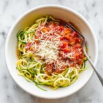 Delight in this fresh and healthy Zucchini Spaghetti, a low-carb alternative to traditional pasta. Featuring tender zucchini noodles topped with a rich, flavorful tomato garlic sauce, this recipe is perfect for a quick weeknight meal or a light dinner. Garnished with fresh basil and optional Parmesan cheese, it’s both nutritious and satisfying.